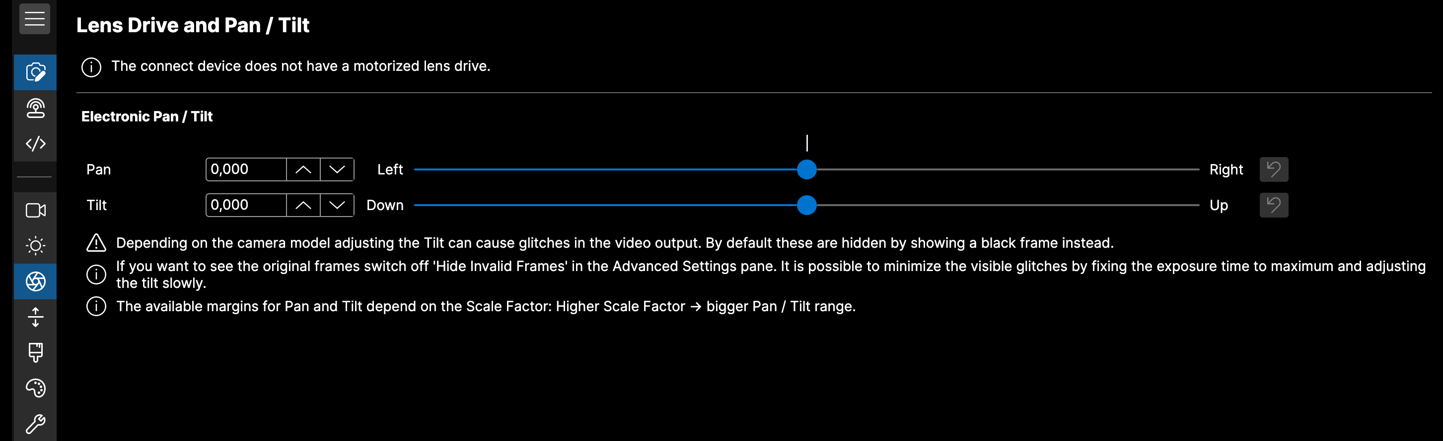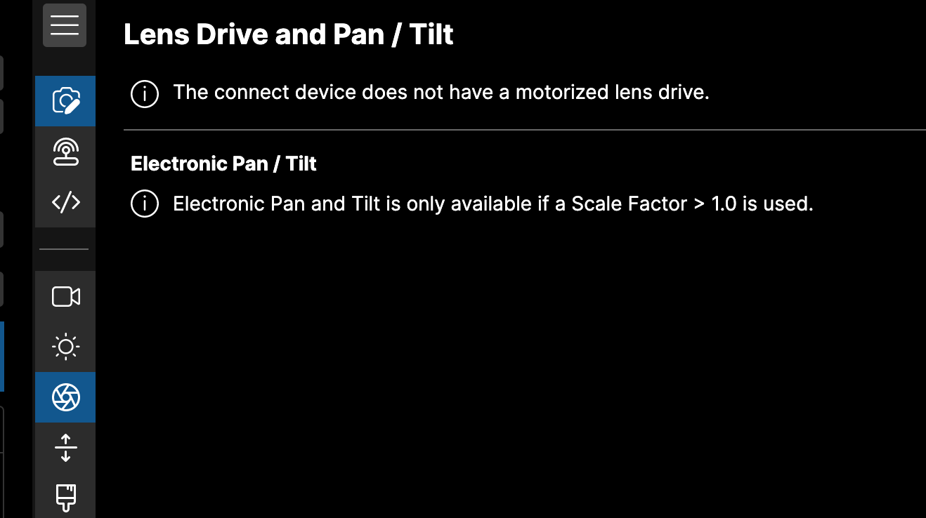 - Your crop factor is 1.00 No pan/tilt will be possible.